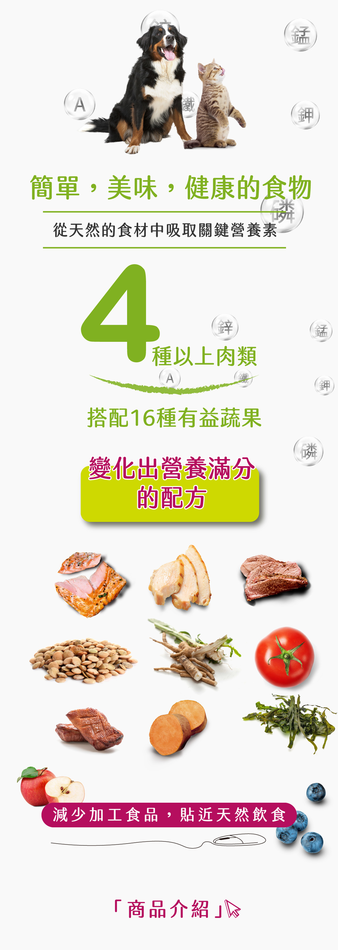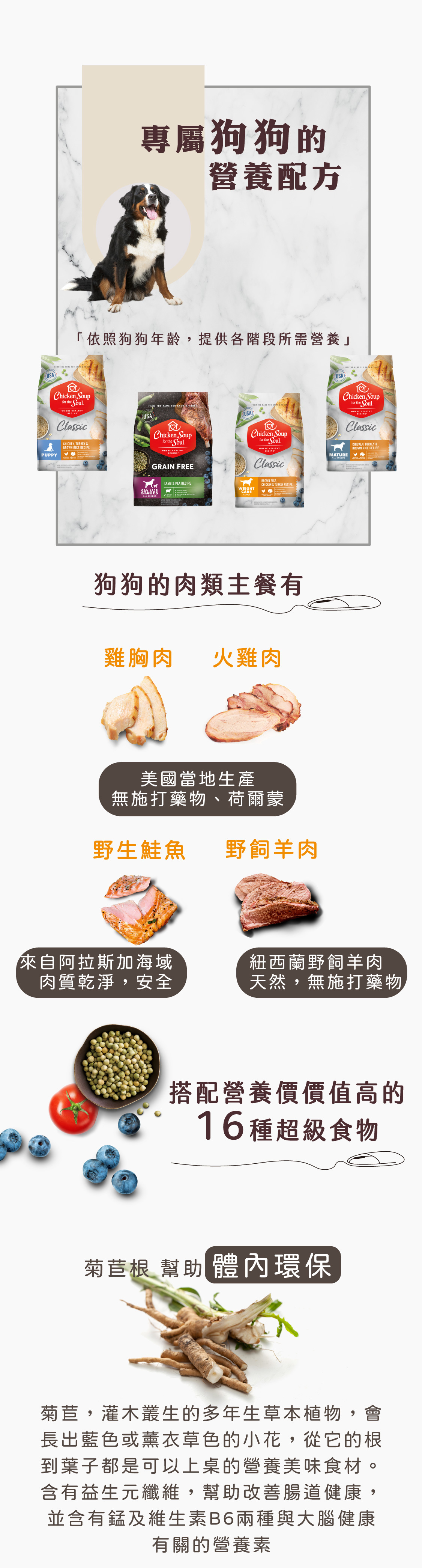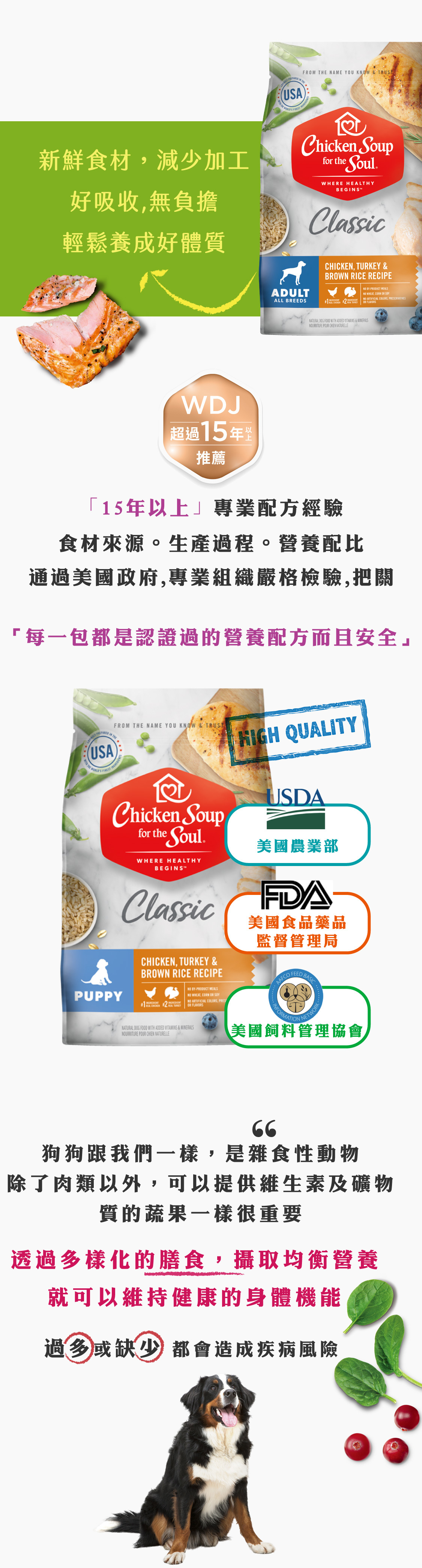 ・單一種肉類蛋白質,9種精選蔬果